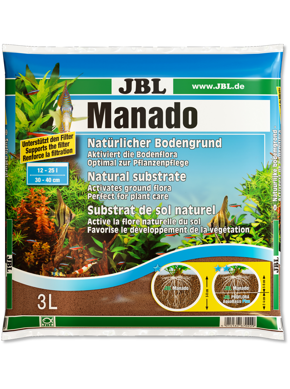 Con el JBL Manado 3 L, tu acuario plantado tendrá un sustrato estable y seguro, que realzará la belleza de tus plantas y la salud de todo el ecosistema acuático.