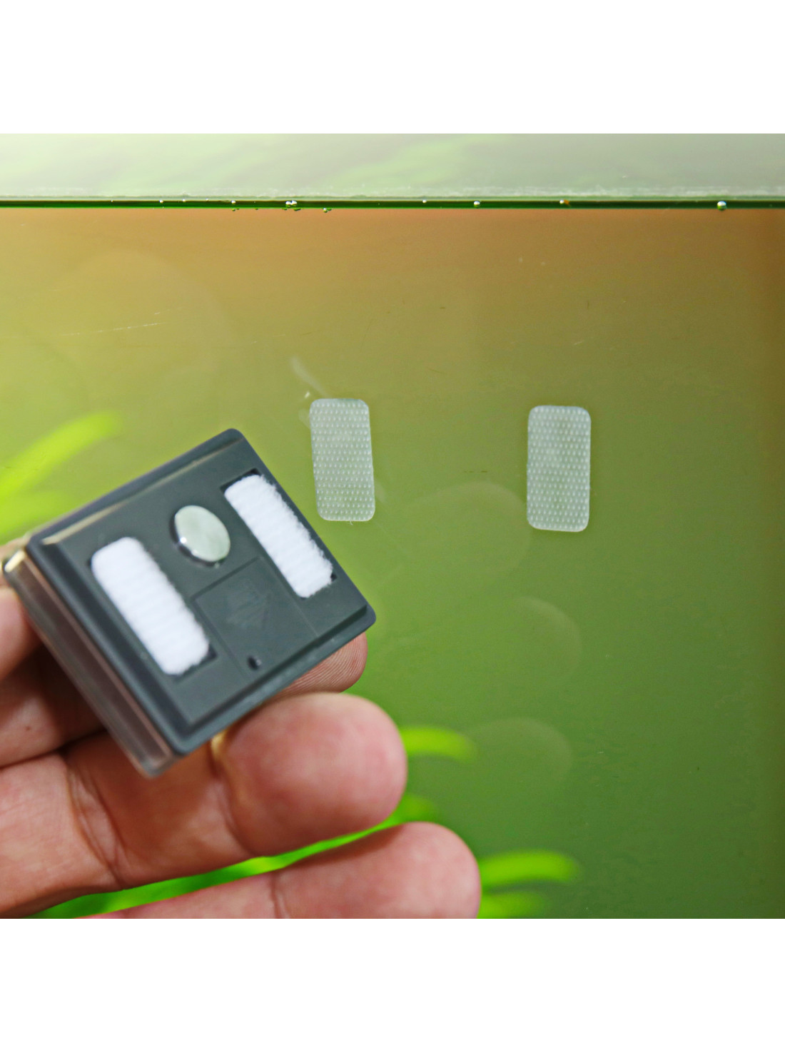 - Se fija al exterior del cristal mediante velcro adhesivo (no sumergible).