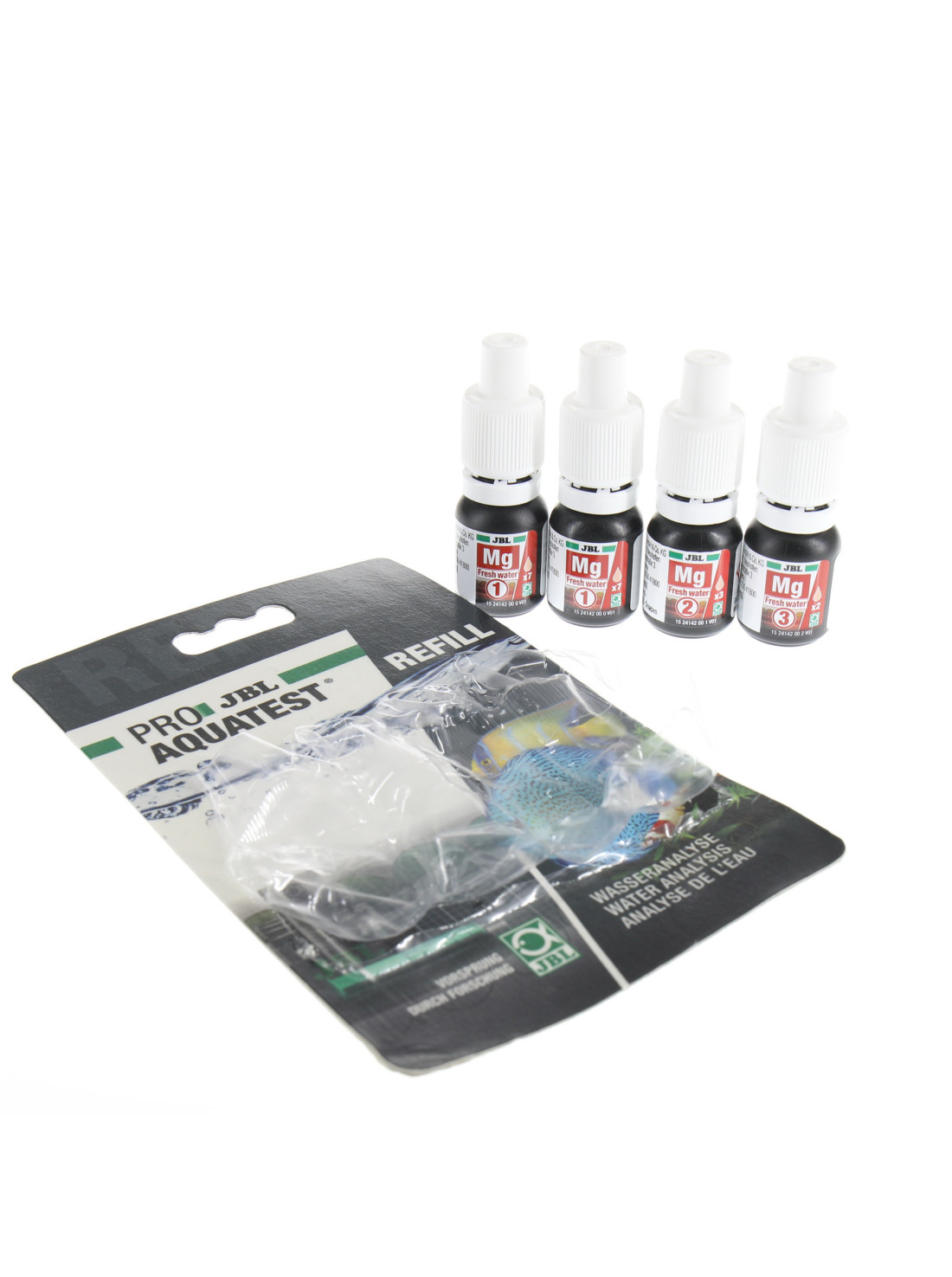 ⚠️ Importante: Esta recarga no incluye cubeta, jeringuilla ni carta de colores. Si no dispone de estos accesorios, debe adquirir el test completo JBL ProAquaTest Mg FreshWater.