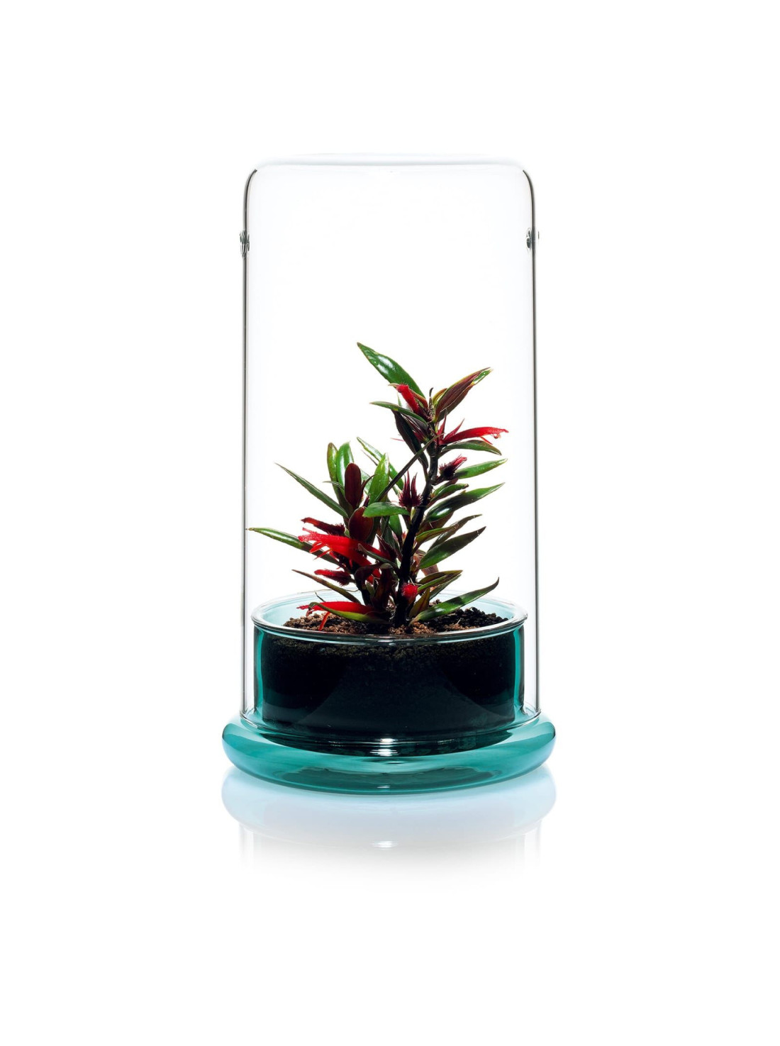 Puedes llenar la base inferior con agua para mantener un ambiente húmedo o incluso cultivar plantas en su forma terrestre.